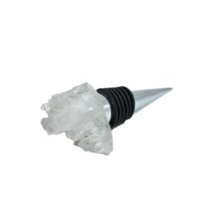 These 2-inch long wine stoppers are sure to keep your wines fresh long after the party stops. Wine stoppers include a sturdy stainless steel base with a silicone seal that keeps bottles airtight. A gorgeous gemstone specimen sits atop the stopper for an elegant look. Choose from rose quartz, white quartz, amethyst, or pyrite.